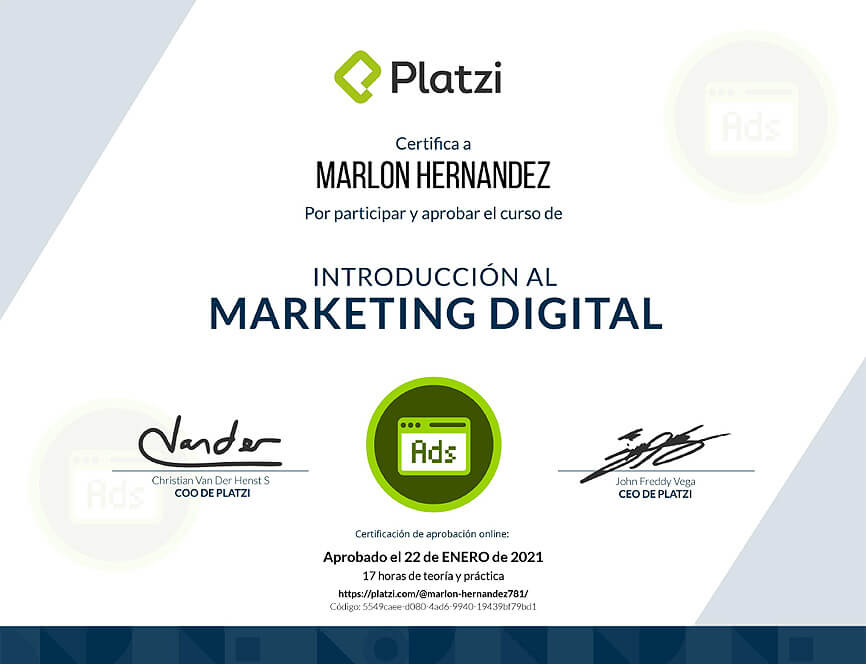 Platzi (con aval de Torresburriel Estudio) · 2020